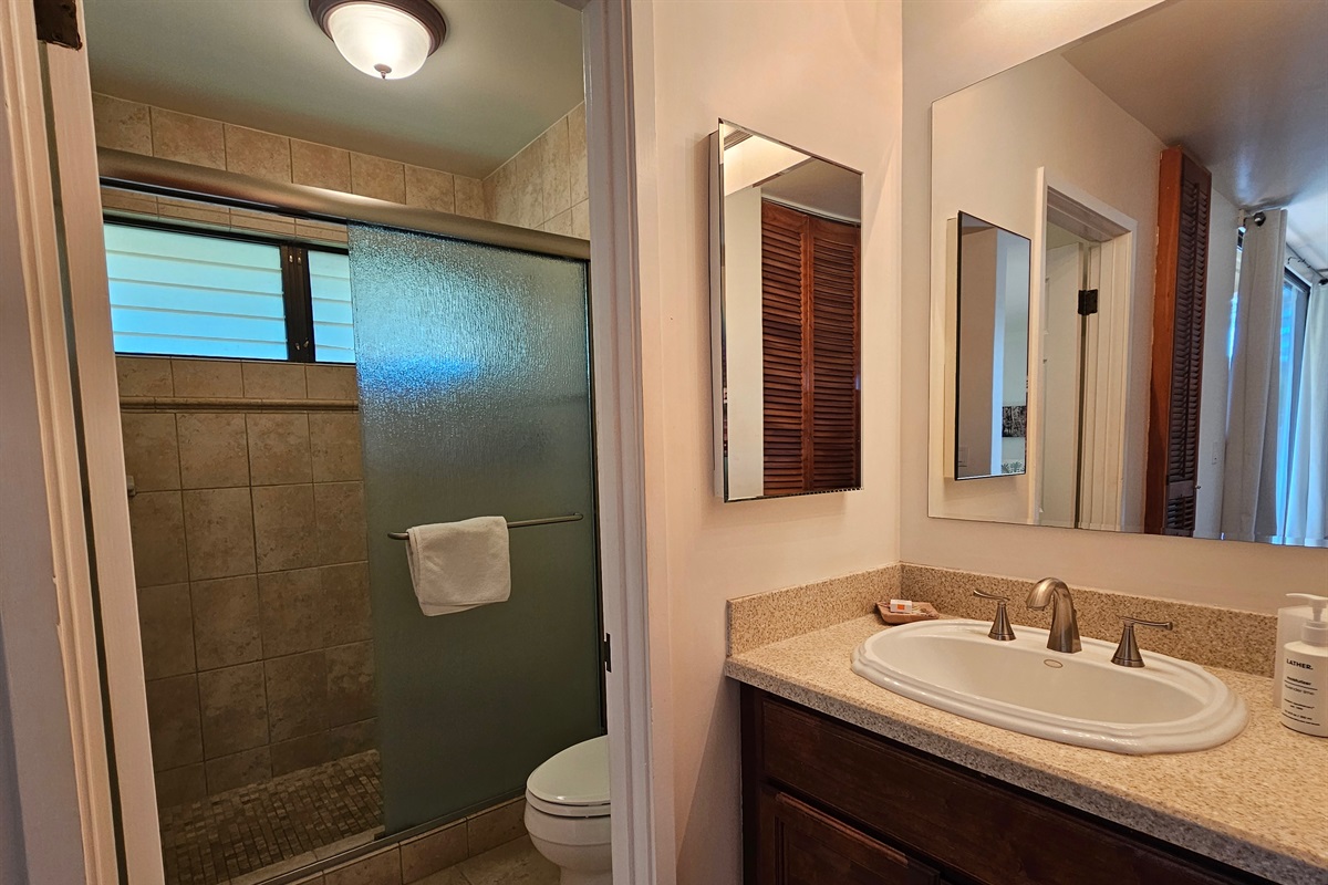 Enjoy the large and open floor plan that combines the living room, dining area and kitchen into one great room. Oversized windows and large sliding glass doors that lead to a private lanai help fill the condo with natural light. This outdoor space offers a private retreat to lounge with a good book and enjoy the cool ocean breezes.